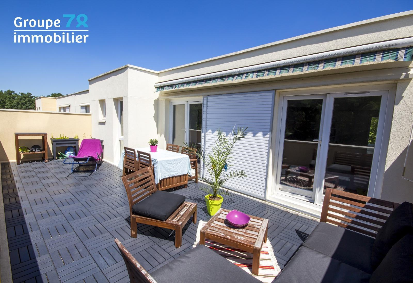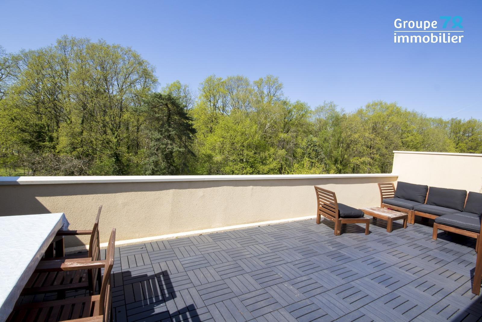 Situé dans une résidence recherchée à Maurepas, en dernier étage avec une terrasse de 26m², venez visiter ce grand duplex d'environ 95m² sans travaux dans lequel vous trouverez : une entrée avec placard, une salle de bains avec baignoire, douche et WC, 3 chambres, une cuisine récente et entièrement équipée, WC et buanderie à l'étage, séjour de 30m² avec 2 portes-fenêtres donnant sur la terrasse et exposées Ouest. Terrasse d'environ 26m² sans aucun vis-à-vis avec magnifique vue sur forêt.